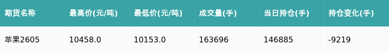 南财智讯3月4日电,盘后期货数据显示,郑州商品交易所的苹果主力合约收涨2.61%,收盘报10449.0元/吨,日内资金流出1.69亿元。其他相关指标见下表: