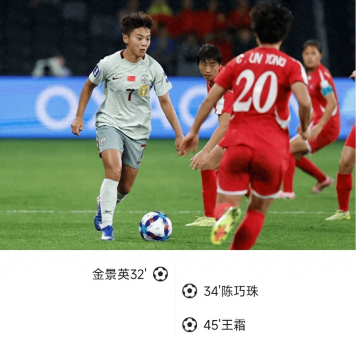 第32分钟,朝鲜队抓住中国队的前场失误打反击,韩金洪右路下底传中,金景英禁区内包抄破门,帮朝鲜队1-0领先。