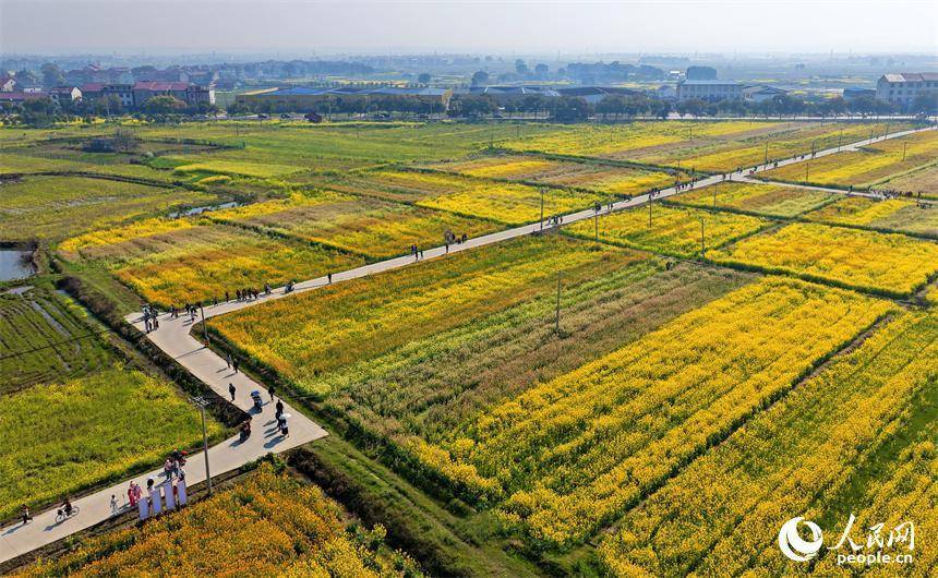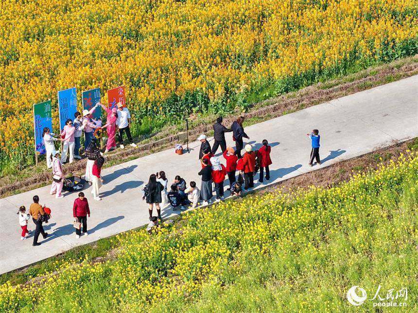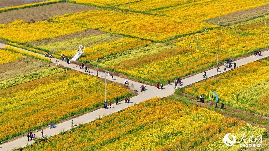 色彩缤纷的油菜花吸引众多游客前来观赏游玩,乐享春日好光景。人民网记者 朱海鹏摄