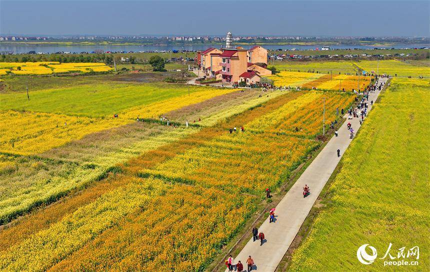 色彩缤纷的油菜花吸引众多游客前来观赏游玩,乐享春日好光景。人民网记者 朱海鹏摄人民网樟树4月1日电 (记者朱海鹏)近日,江西省樟树市永泰镇的七彩油菜花种植基地迎来盛花期,色彩缤纷的油菜花与村庄、河流相互映衬,吸引众多游客前来观赏游玩,乐享春日好光景。