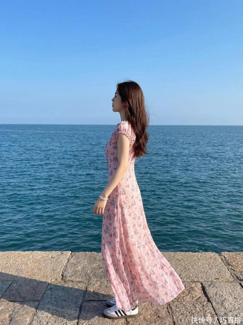 另外如果背部线条紧致流畅,整个人直接会发光,冷白皮姐妹直接借鉴博主身上这类粉白配色的碎花裙美若天仙。