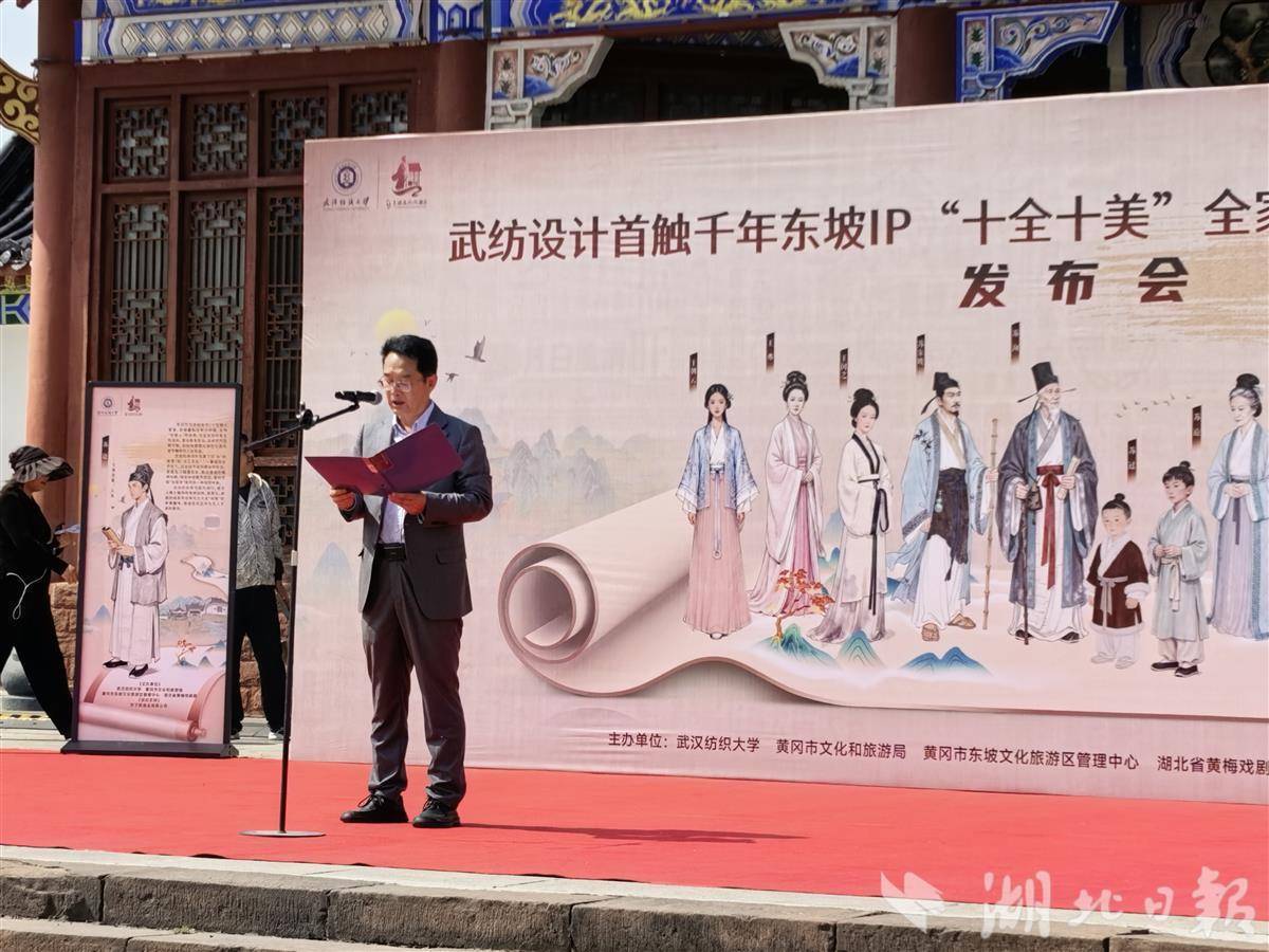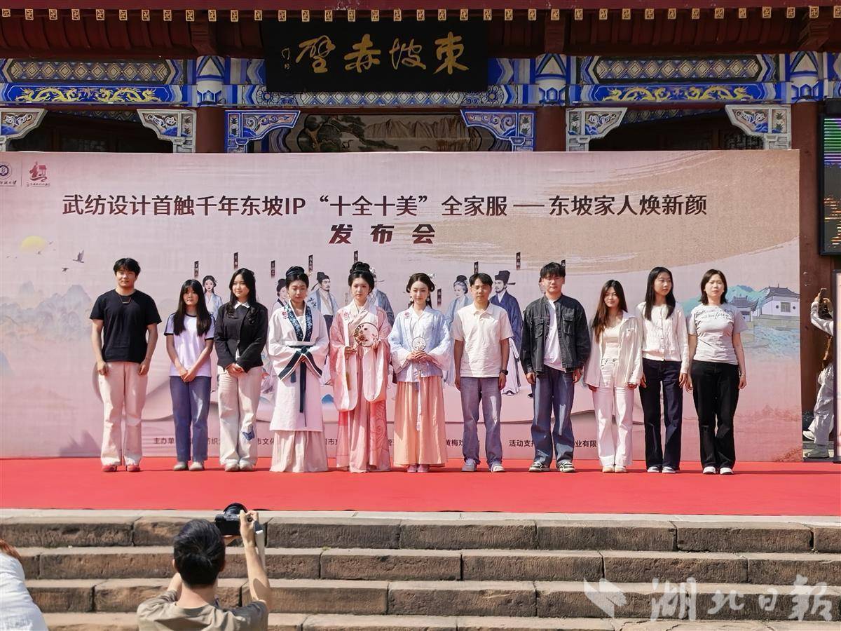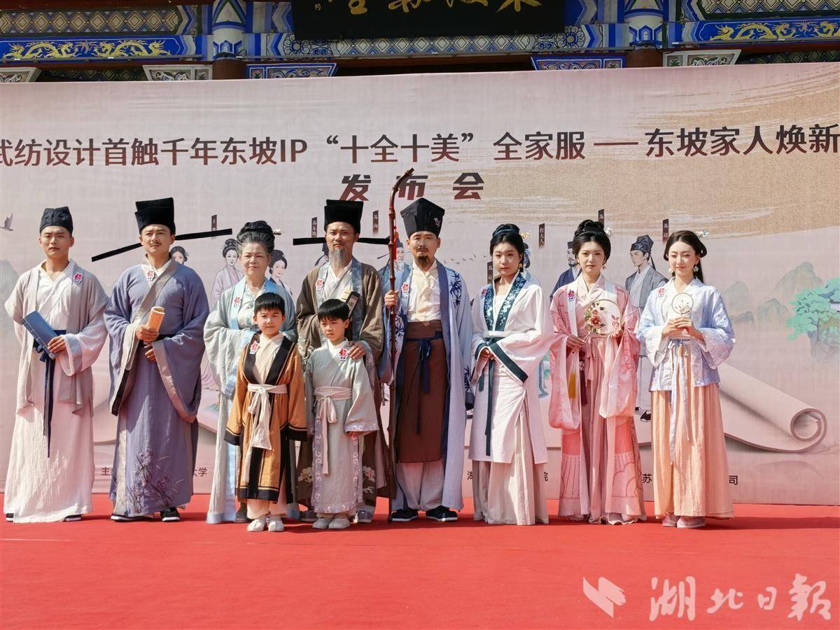4月25日,一场别开生面的“穿越”大戏在黄冈东坡赤壁景区大门口上演。武汉纺织大学与黄冈市联合主办的“十全十美”全家服——东坡家人焕新颜发布会举行。