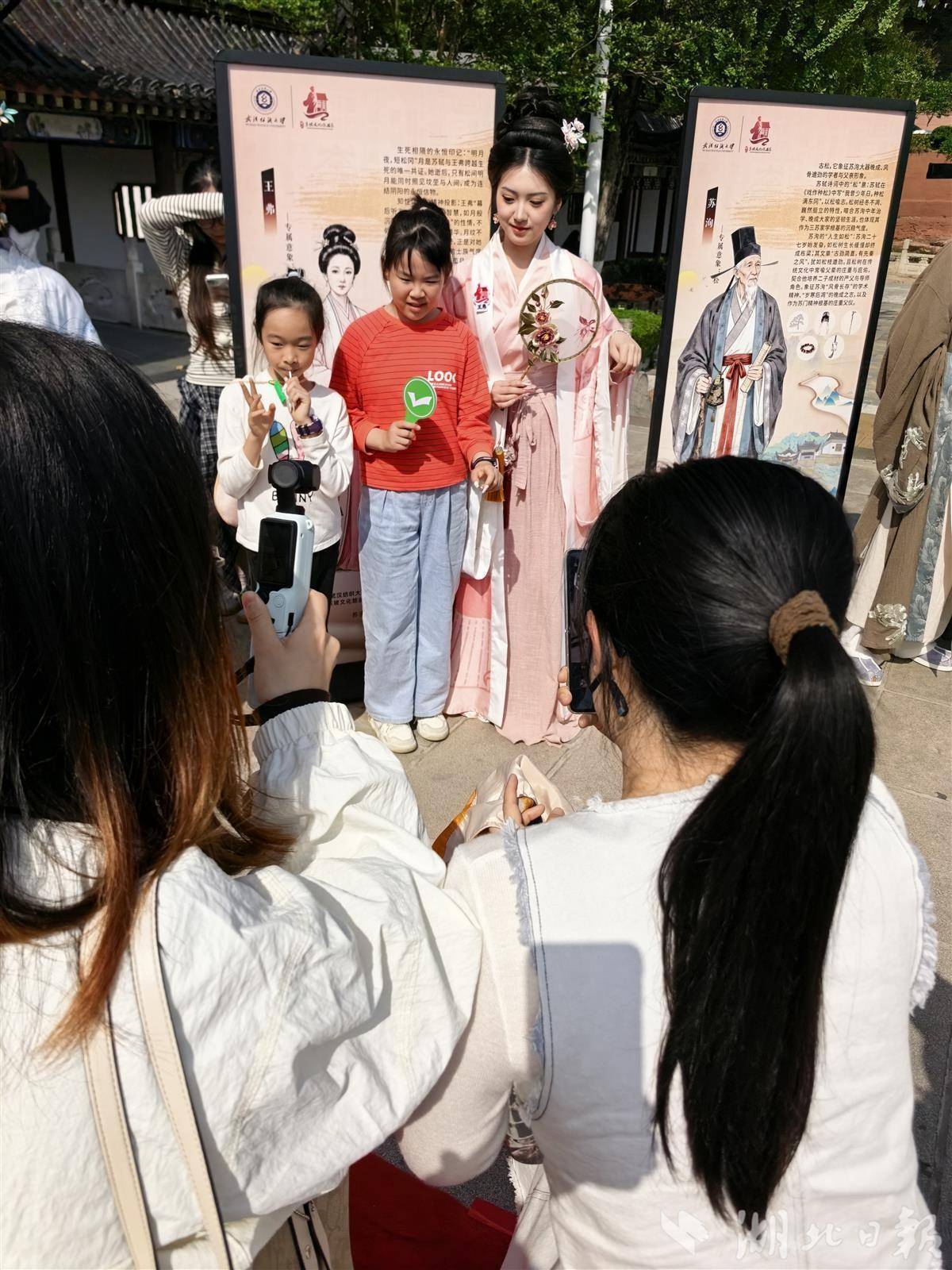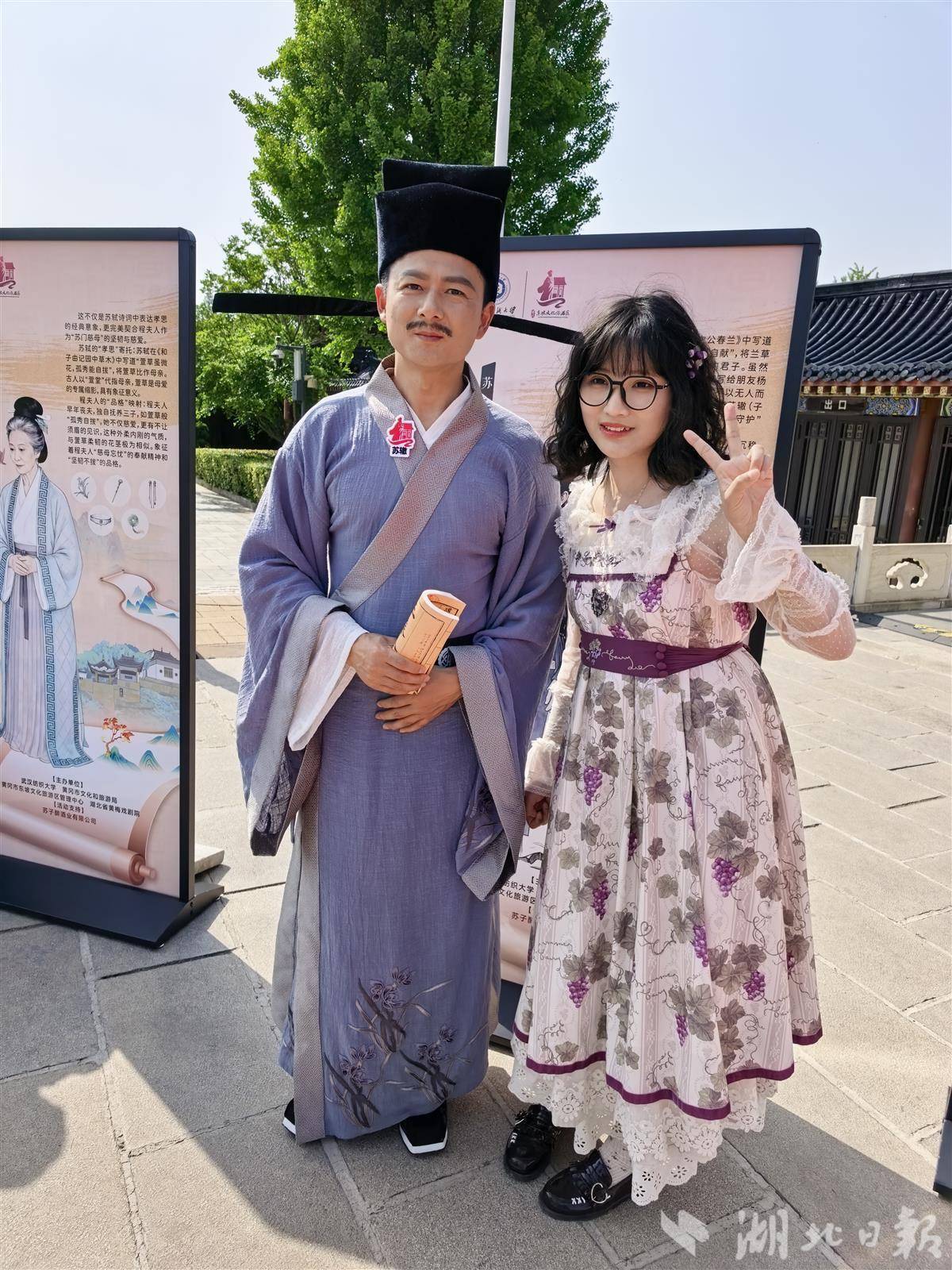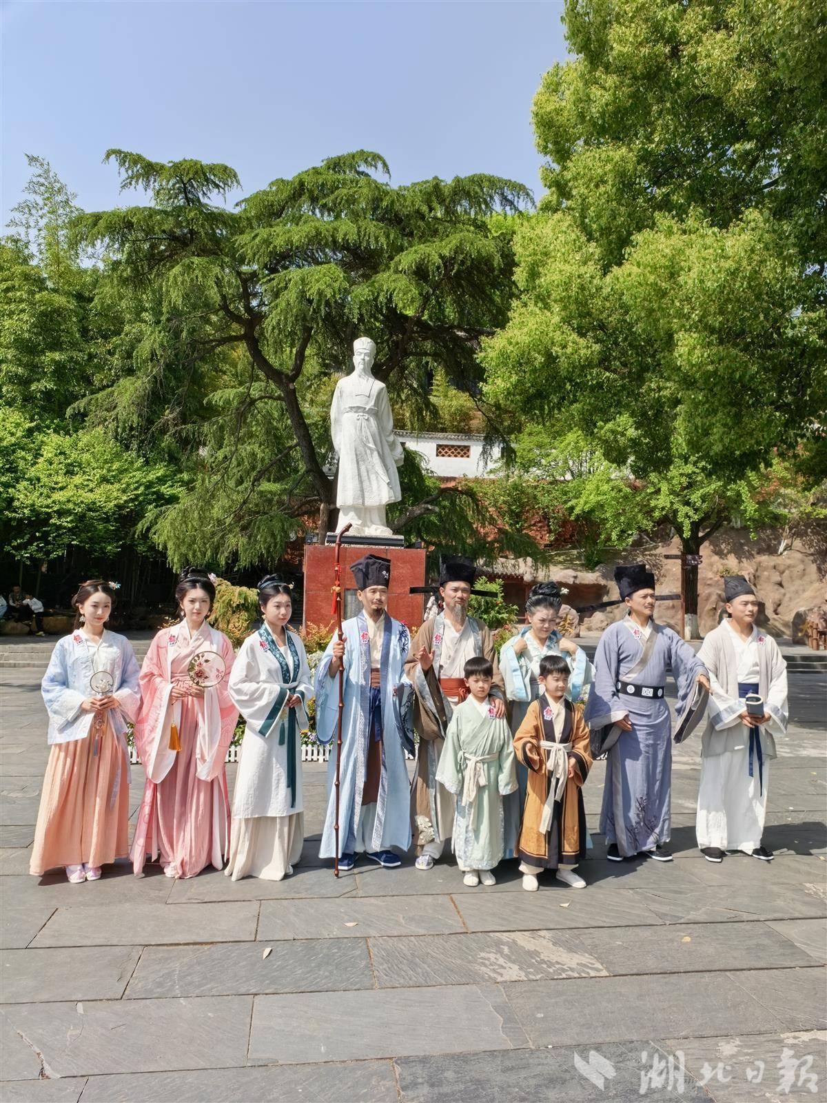 4月25日,一场别开生面的“穿越”大戏在黄冈东坡赤壁景区大门口上演。武汉纺织大学与黄冈市联合主办的“十全十美”全家服——东坡家人焕新颜发布会举行。
