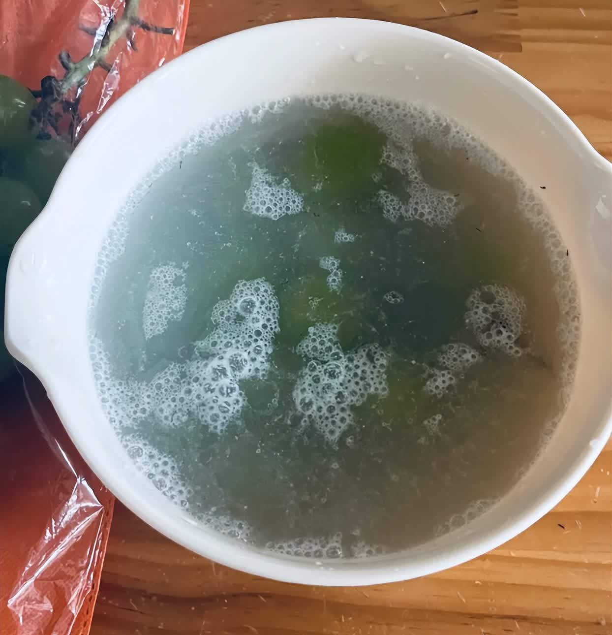 比如,像是葡萄啊、杨梅啊、这样的水果,放在清水里面倒入一点面粉,浸泡一会,就可以把水果里面的脏东西泡出来了。