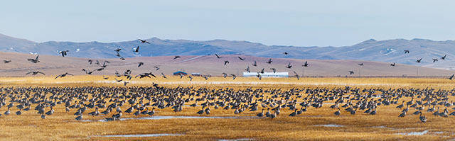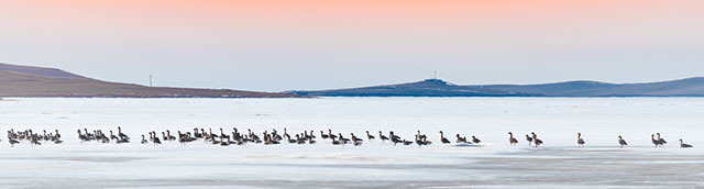 成群大雁在霍林郭勒额仑草原停留。吴金国摄